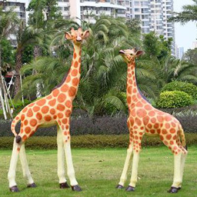 仿真长颈鹿雕塑一般是由玻璃钢树脂制作而成的雕塑,长颈鹿雕塑象征优雅、高贵、自由、美好生活的向往以及独特之美的追求和赞美。